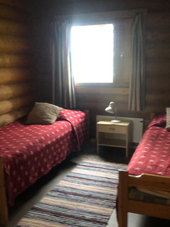 We booked the cabin through AirBnb and it is the most cozy and quaint little accommodation! The cabin is a tiny two bedroom red cabin with a little kitchen, living room and real Finnish wooden sauna in the bathroom. In front is a lake access, a little patio and a row boat. We are way off the beaten path and it is so peaceful and quiet.