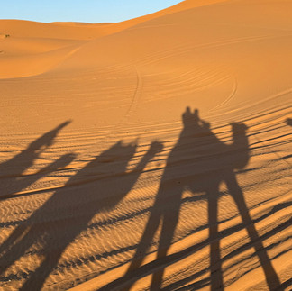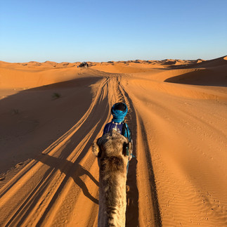 The trek to the desert was the most anticipated thing about our trip, which M had gleefully shared with anyone who would listen for the last several weeks. The most scenic way into the Sahara desert camp is by camel!